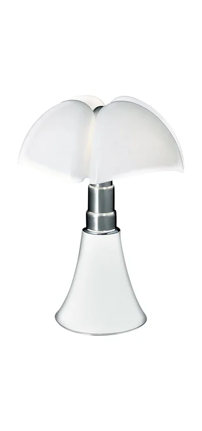 Son nom, qui signifie « chauve-souris » en italien, évoque la forme ondulée de son abat-jour télescopique. Pièce maîtresse du design italien, elle fut longtemps boudée pour son allure avant-gardiste.