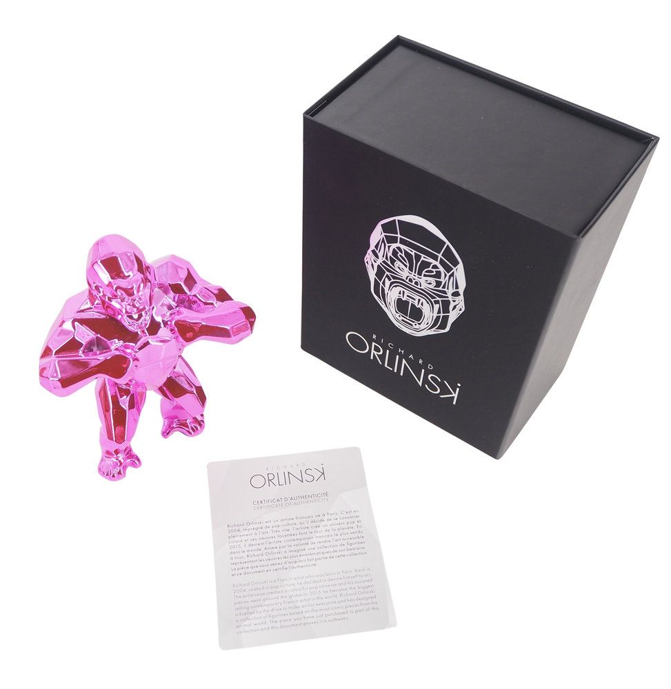 Richard ORLINSKI (1966) Kong Spirit (Pink edition) Sculpture originale en résine Couleur Rose métallisé Dimensions : 13 x 10 x 5 cm Présentée dans sa boite écrin avec son certificat Excellent état Expédition obligatoire, jusqu’à 5 Lithographies dans votre colis pour 14,76€ TTC en France Métropolitaine, et 29,64€ TTC pour l’Europe
