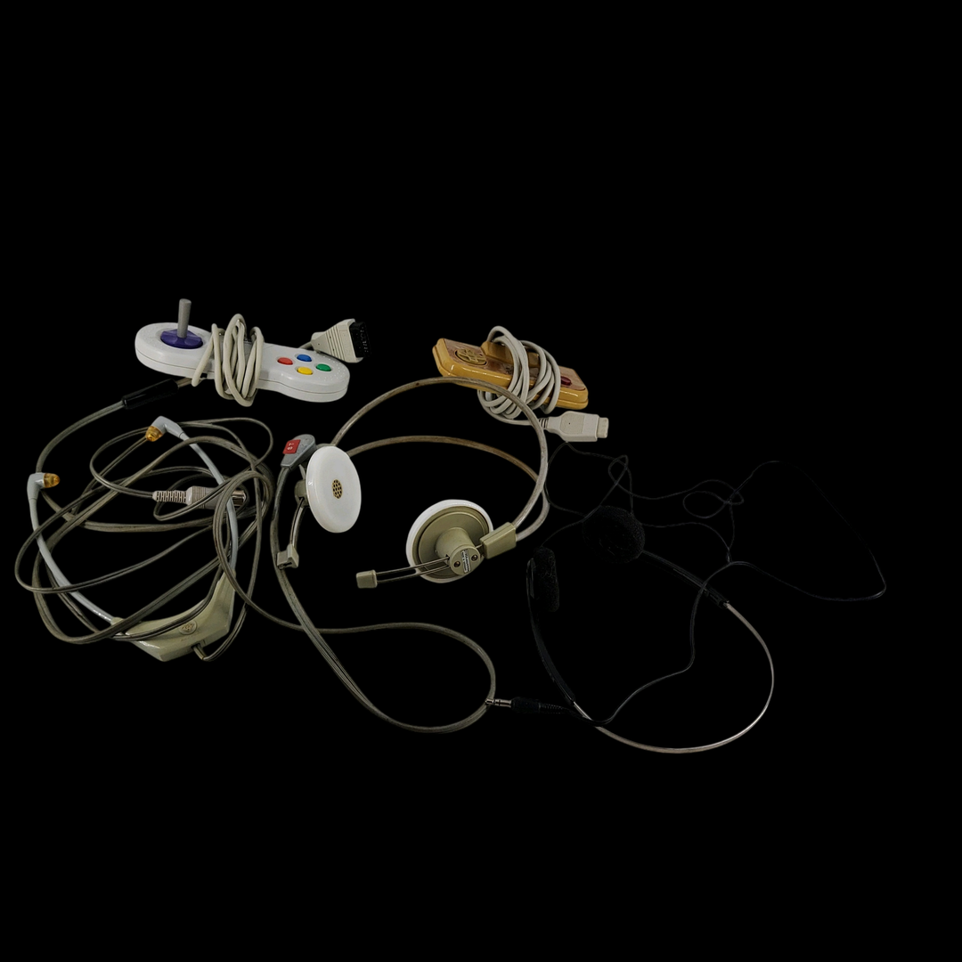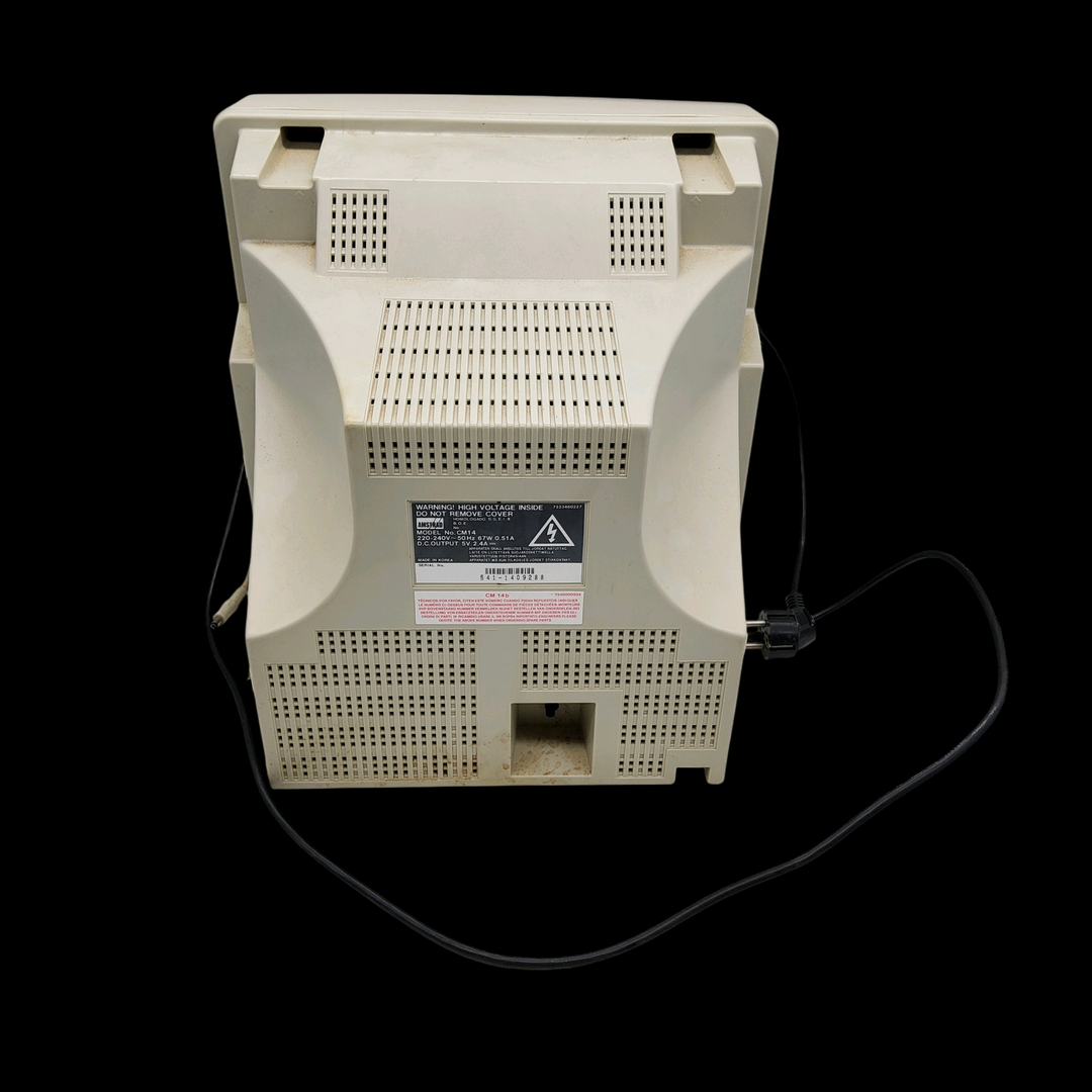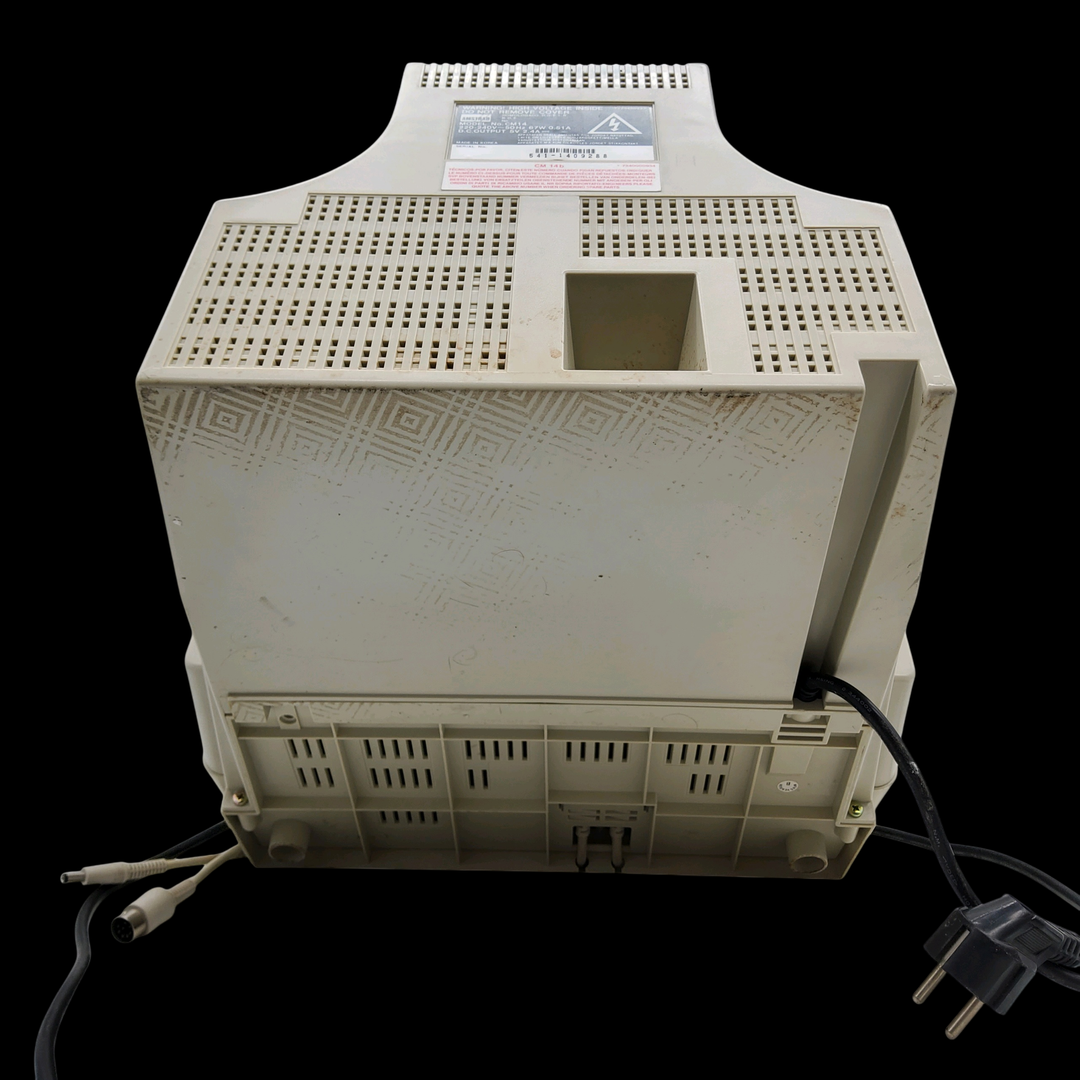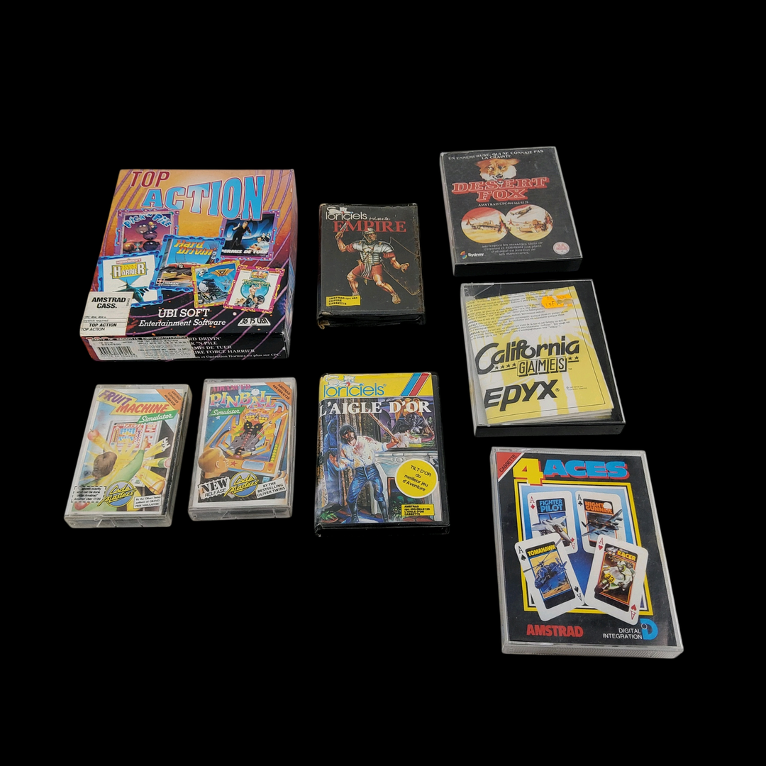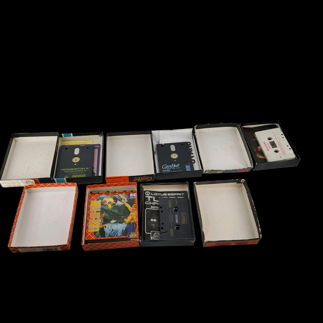 Amstrad – Écran Amstrad CM14 (Test d’allumage effectué avec succès) – Micro ordinateur Amstrad 6128 – Test d’allumage non concluant. Avec un lot de câbles & manettes, lot de 5 jeux.