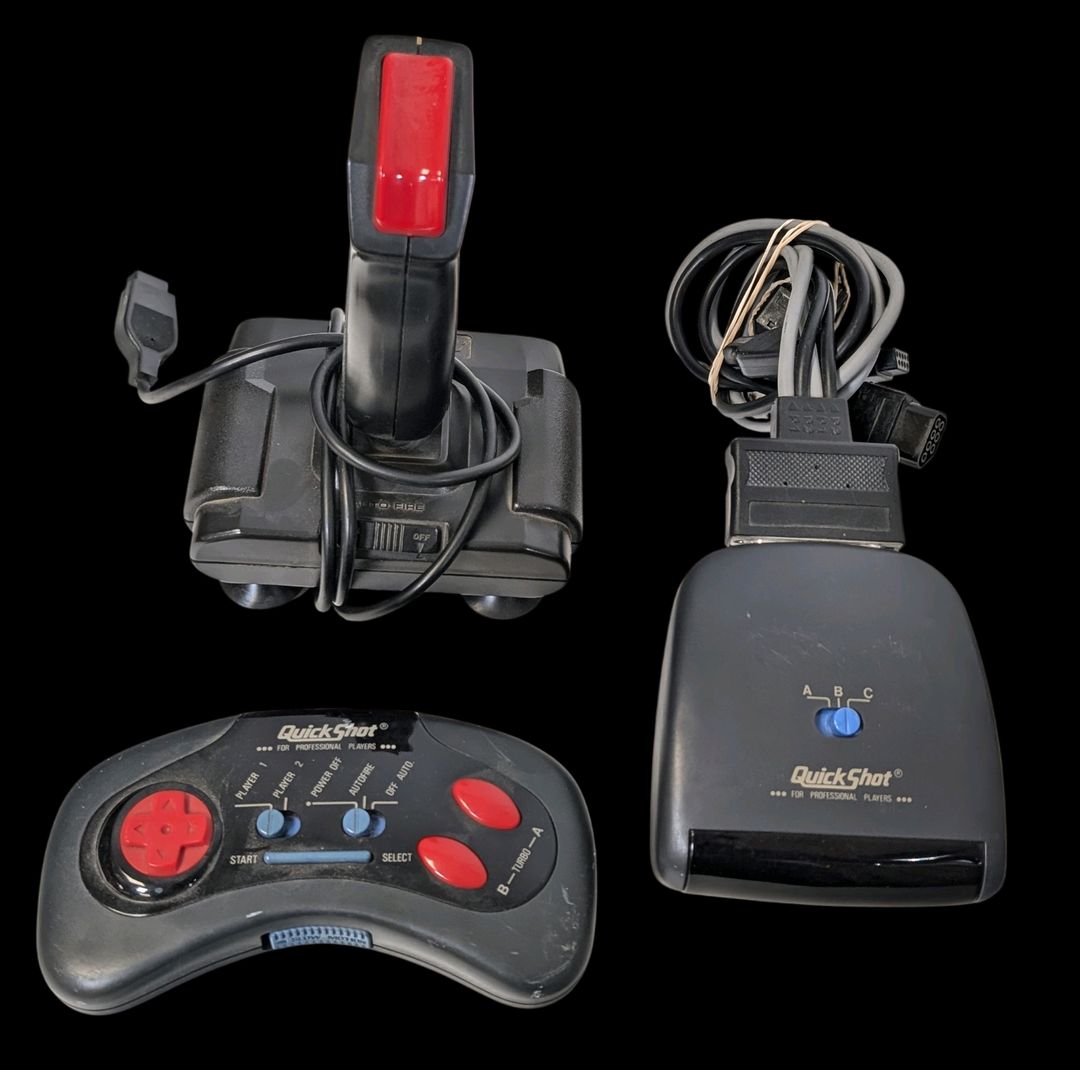Lot de 4 controllers (dont Quickshot, Sega) ainsi qu’un module sans fil Quickshot.