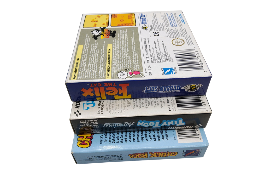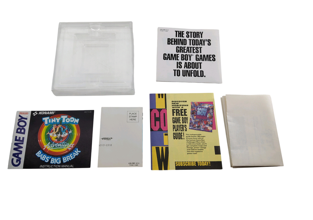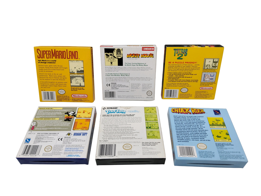 Nintendo – Game Boy – Lot de 6 jeux de différentes licences dont : Tiny Toon Bab’s Big Break, Mickey Mouse, Super Mario Land. Avec notices, cales en plastique, boîtes.