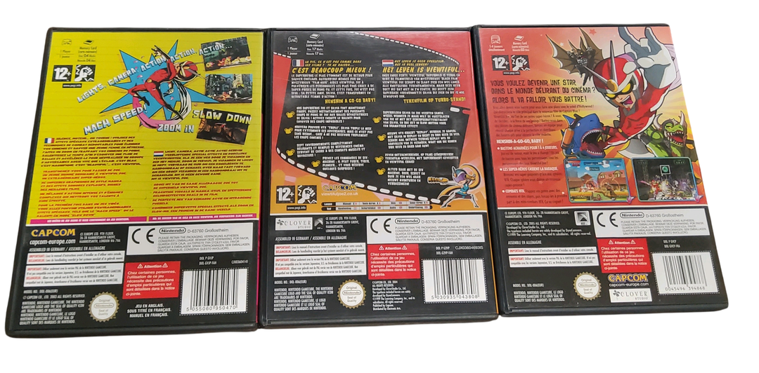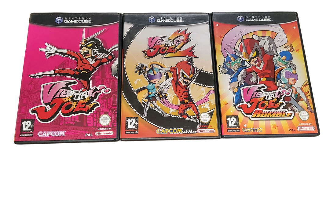 Nintendo – GameCube – Lot de 3 jeux : Viewtiful Joe, Viewtiful Joe 2, Viewtiful Joe Rumble. Avec notices, boîtes. Version des jeux PAL.