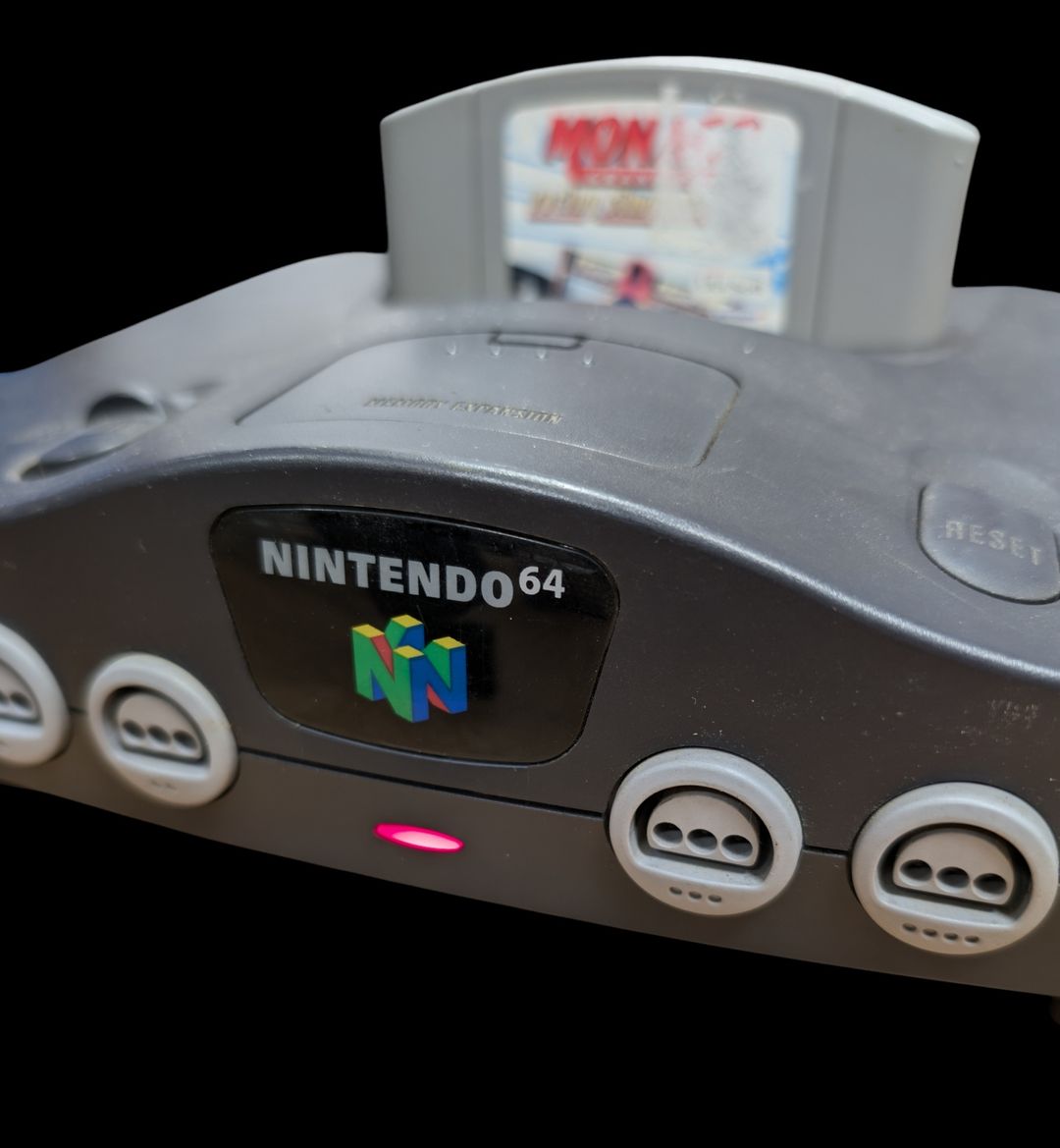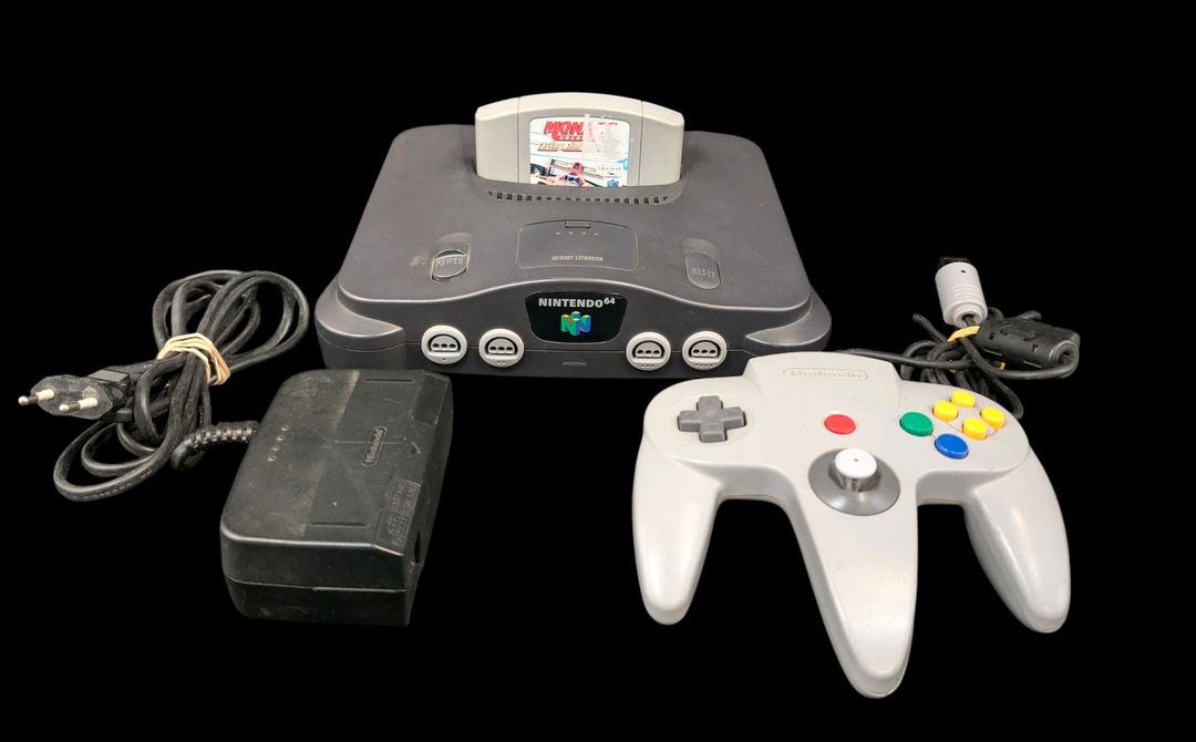 Nintendo – N64 – Console de salon Nintendo 64. Test d’allumage effectué avec succès. Avec câble d’alimentation, une manette et un jeu Monaco GP. Version du jeu EUR.