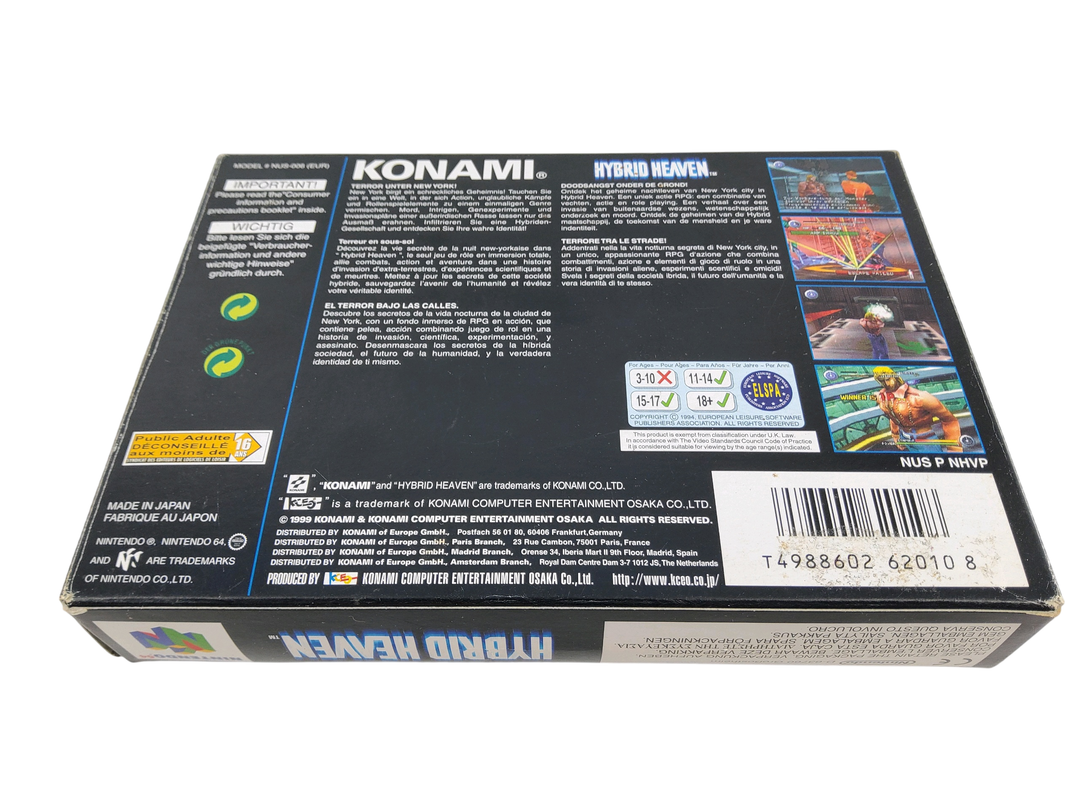 Nintendo – N64 – Jeu : Hybrid Heaven. Avec boîte, cale en carton, notice. Version du JEU EUR.