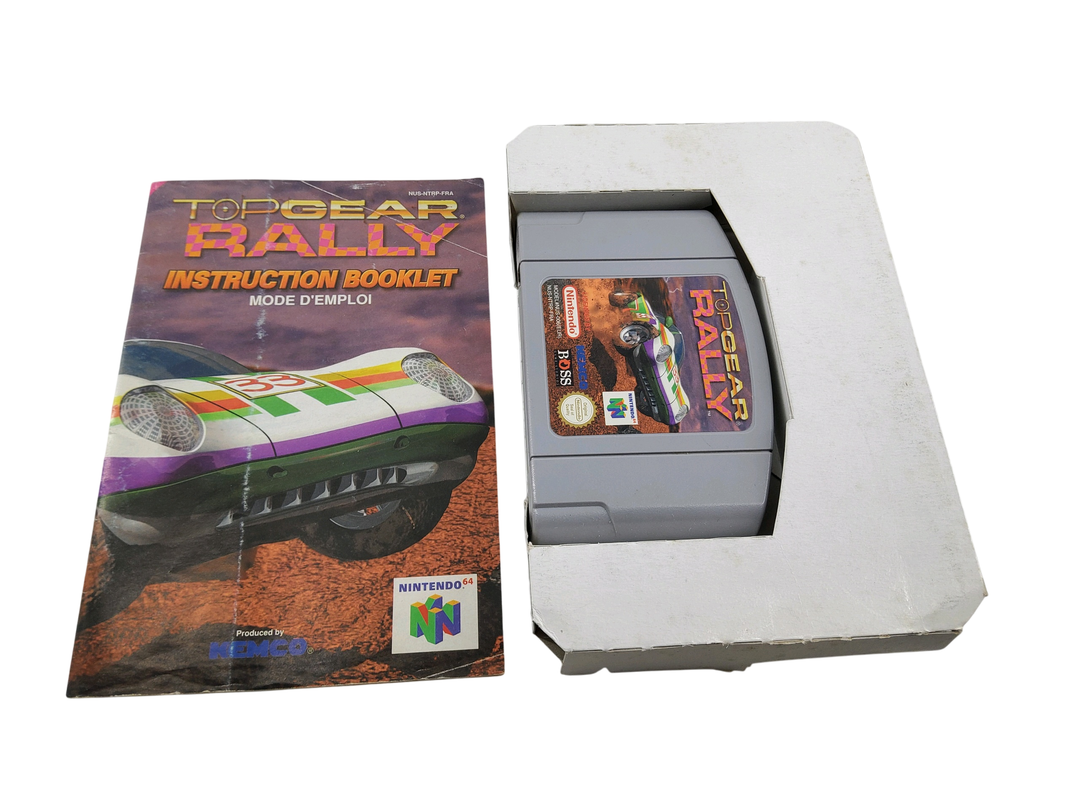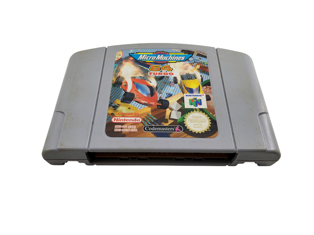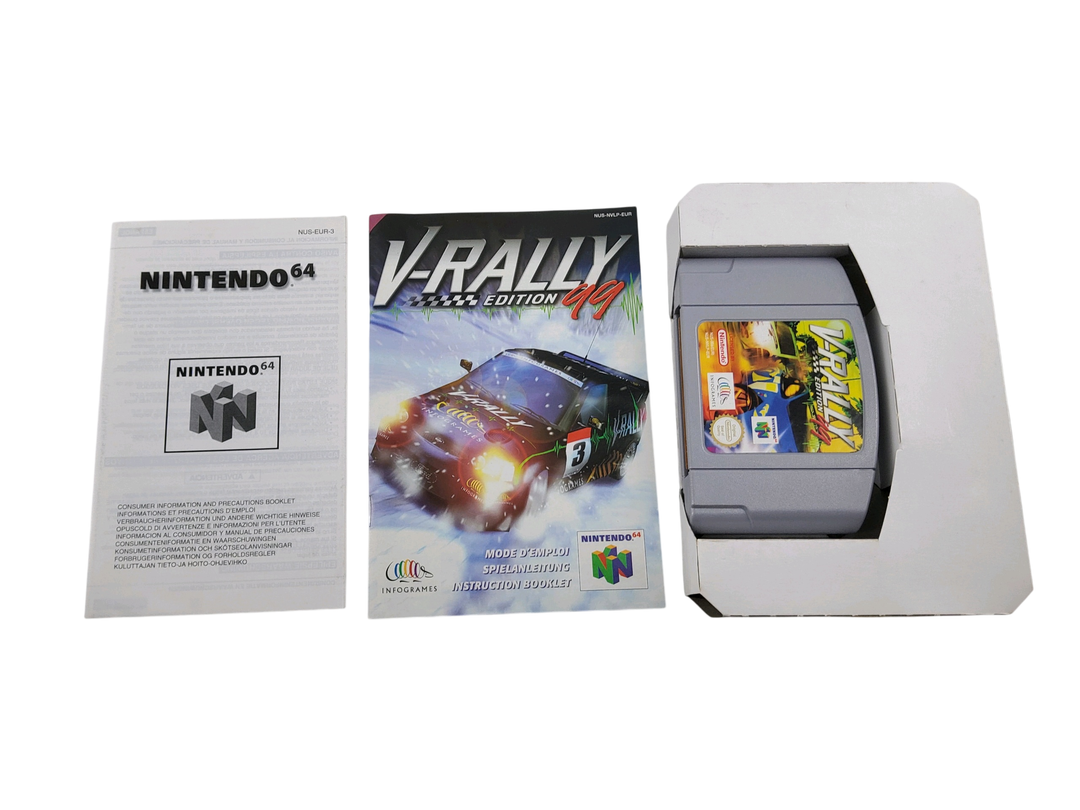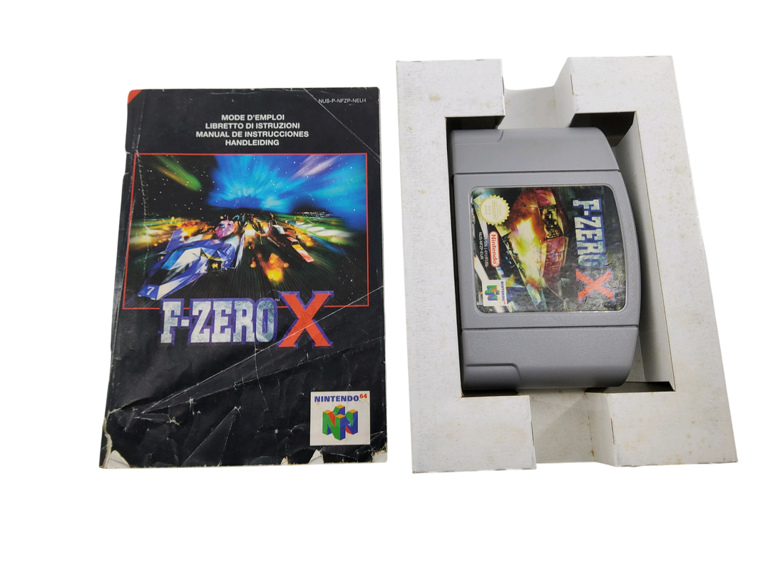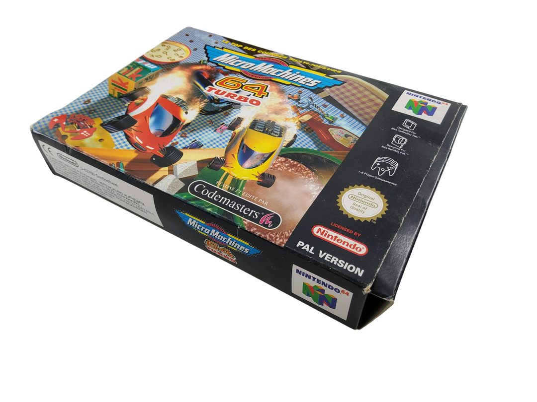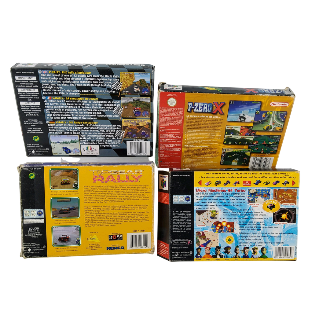 Nintendo – N64 – Lot de 4 jeux de courses automobiles : F-Zero X, Micro machine 64 Turbo, V-Rally Edition 99, Top Gear Rally. Avec boîtes, 3 cales en carton, notices.