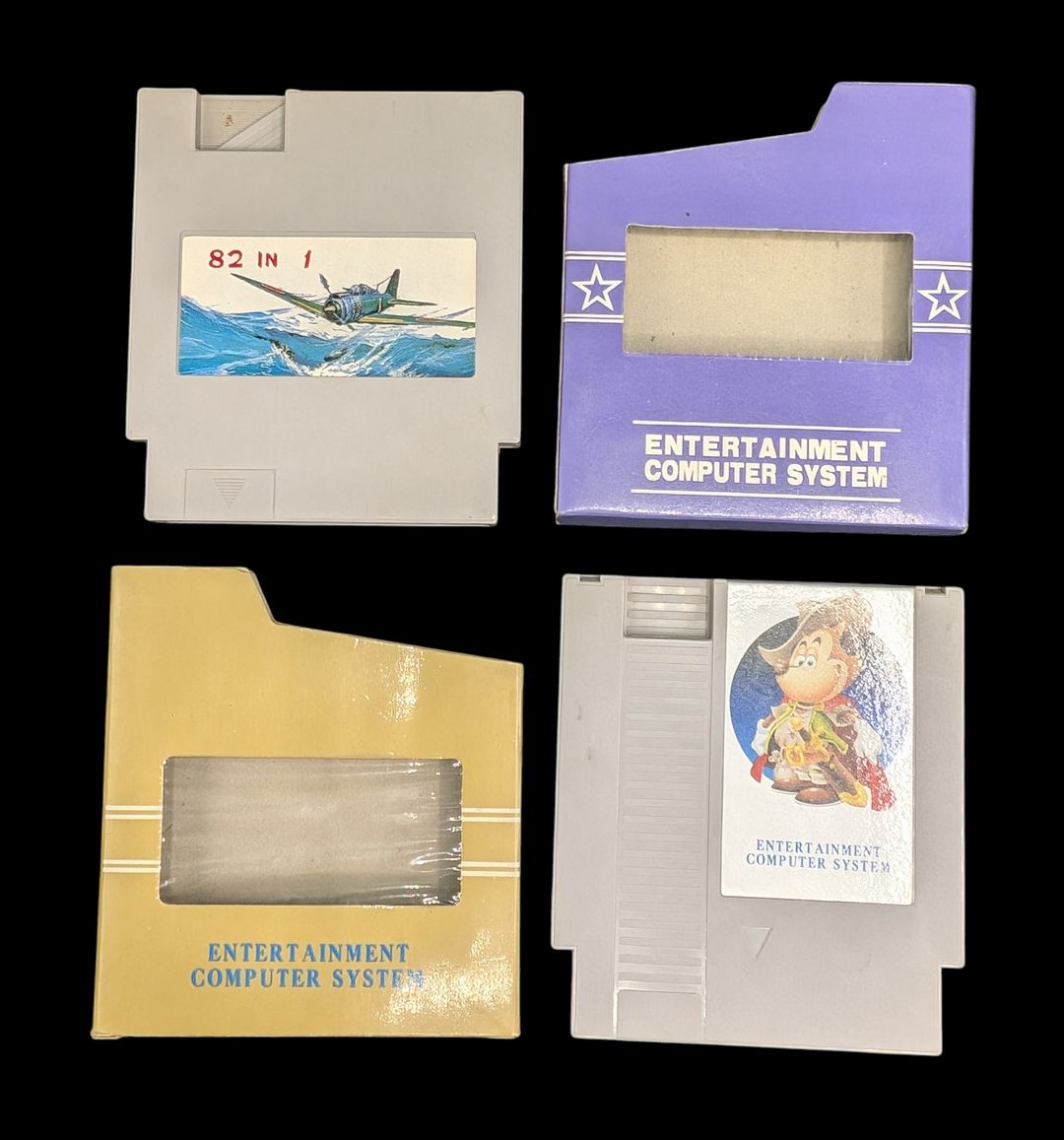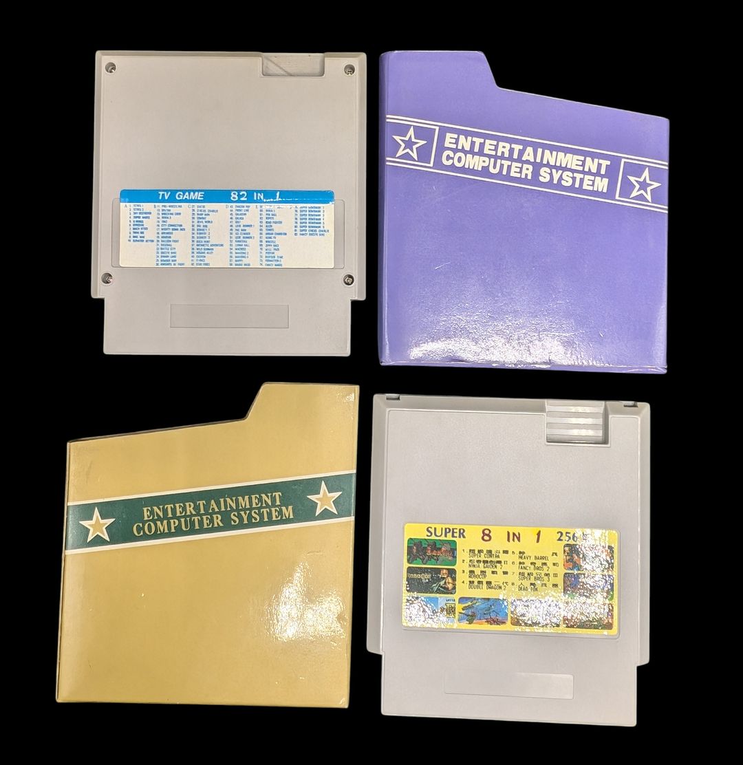 Nintendo – Nes – Lot de deux cartouches Multijeux compatibles Nes : 82 in 1 et 8 in 1. Avec fourreaux.