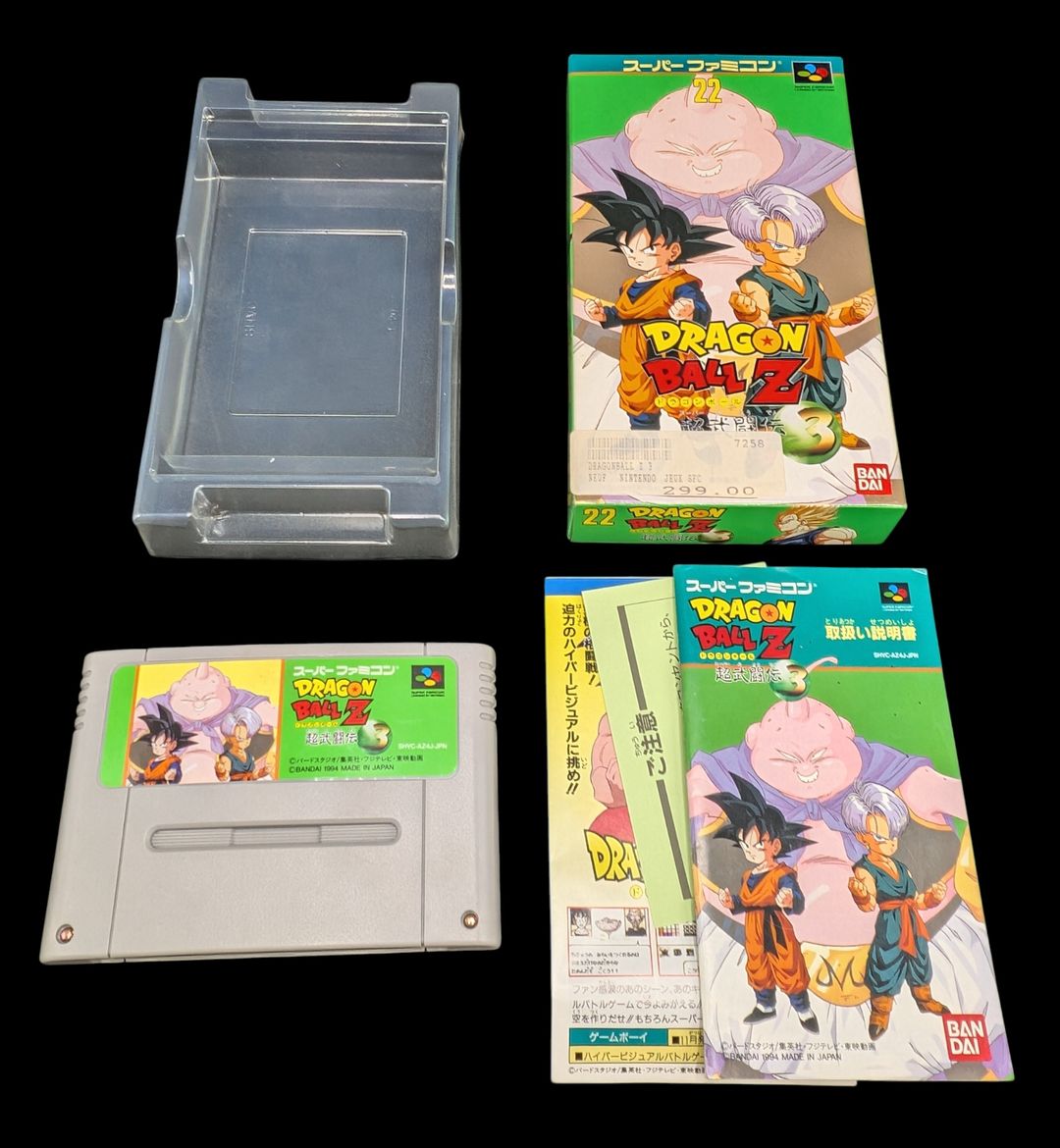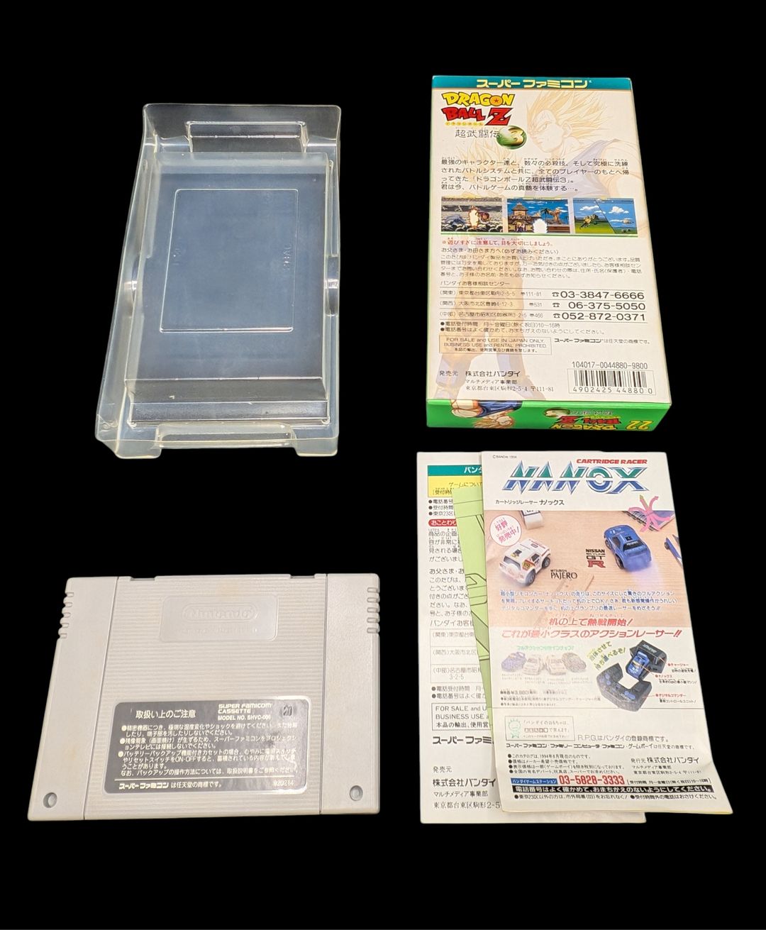 Nintendo – Super Famicom – Jeu Dragon Ball Z. Avec boîte, notice, cale en plastique. Version du jeu en japonais.