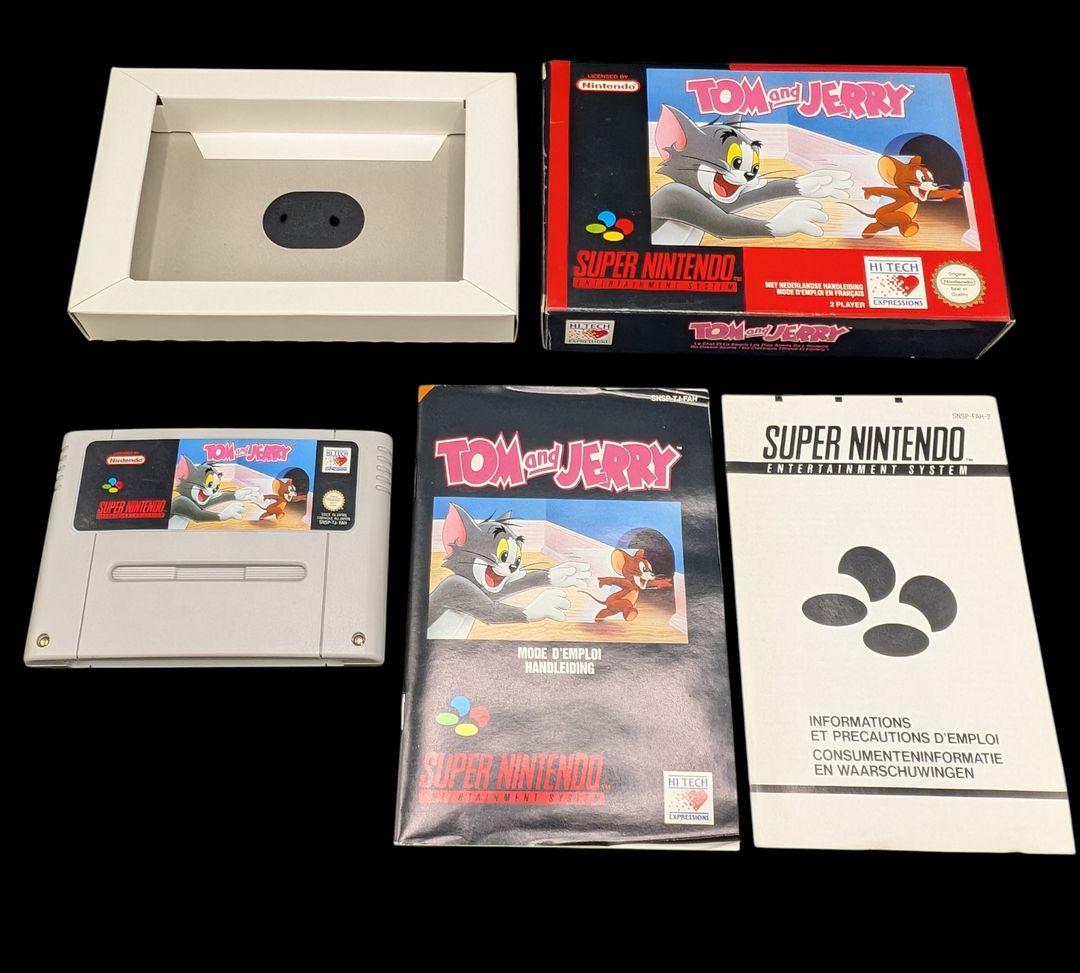 Nintendo – Super NES – Jeu Tom and Jerry. Avec boîte, notice, cale en carton. Version du jeu FAH.