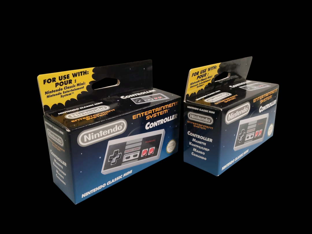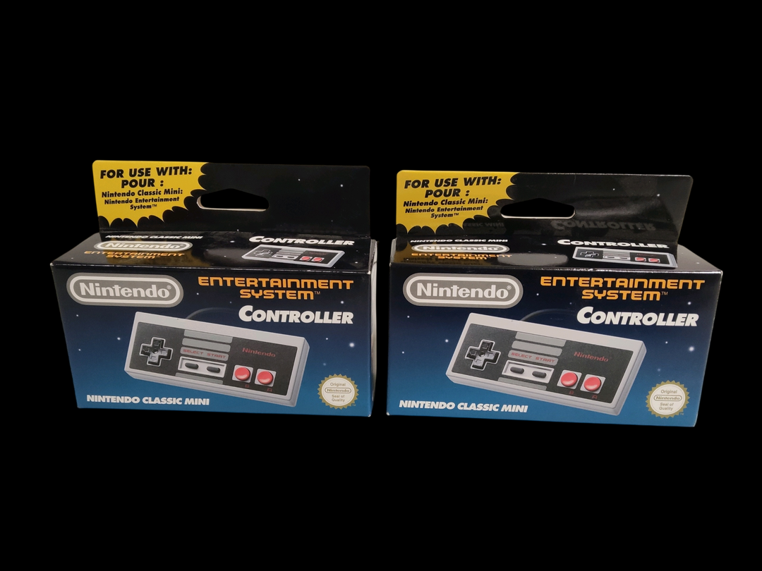 Nintendo – Super NES & NES – Ensemble d’accessoires et manettes comprenant : – Une manette Nes Max (avec boîte) – Deux manettes officielles NES Classic Mini (boîte d’origine) – Une manette sans fil Wireless Fighting Commander Hori (SNES Classic Edition) – Une manette Wireless Turbo Controller – Deux câbles rallonges (SNES Classic/Retro-Bit) Certains éléments en état Neuf, scellés.