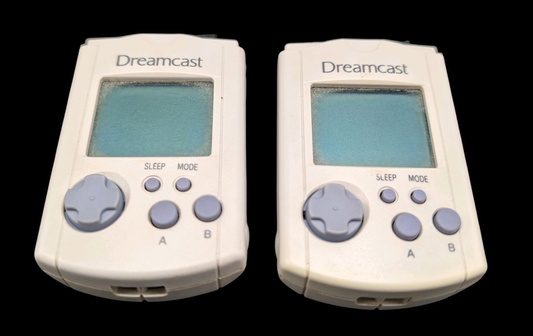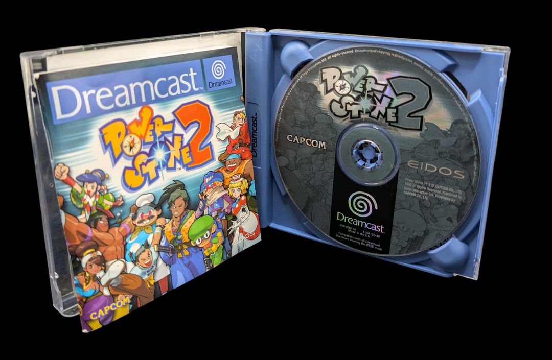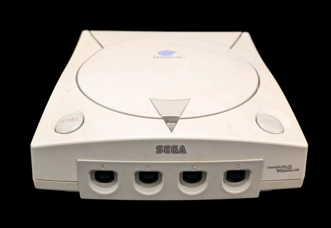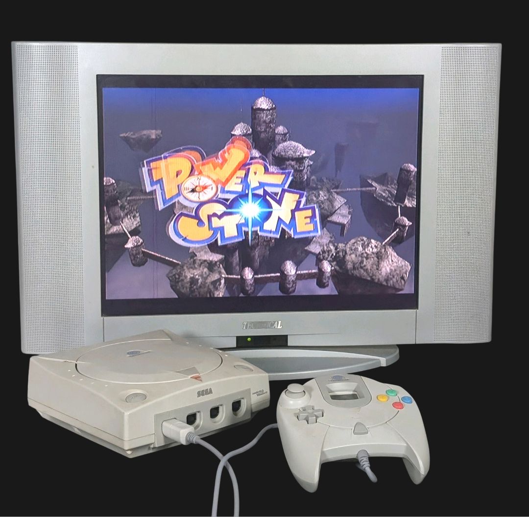 Sega – Console de salon – Dreamcast (Avec 1 jeu et accessoires dont 2 cartes mémoires VMU). Test d’allumage effectué avec succès – Jeu associé : Power Stone 2, avec son GD-ROM et sa notice. (Version du jeu PAL). Avec 4 manettes fonctionnelles, cordon d’alimentation, prise péritel, 2 cartes mémoires VMU. Version du jeu PAL.
