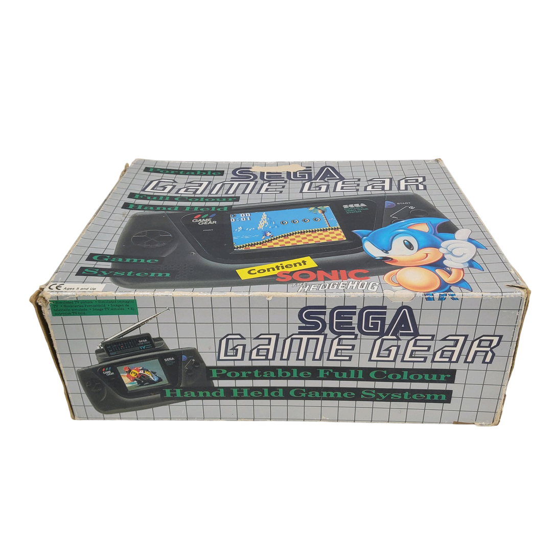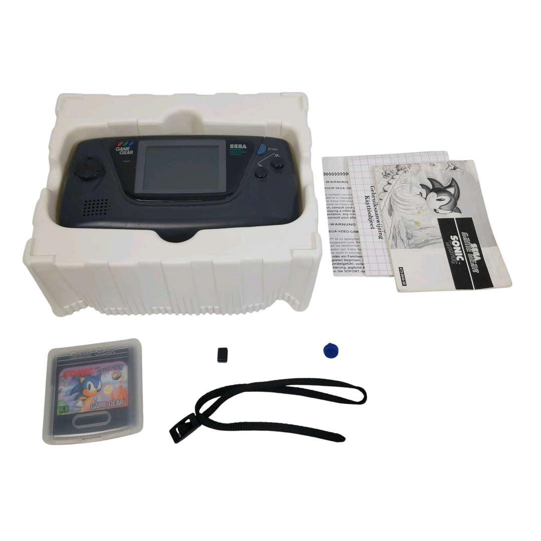 Sega – Game Gear – Coffret Sonic – Console de salon (033547) – Hors-service. Avec boîte en carton, cale plastique, notices, jeu Sonic.