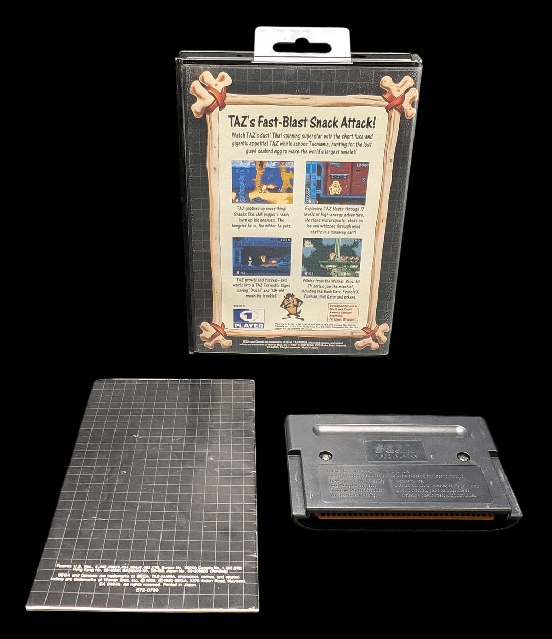 Sega – Genesis – Jeu Taz Mania. Avec boîte, cartouche, notice. Version du jeu NTSC.