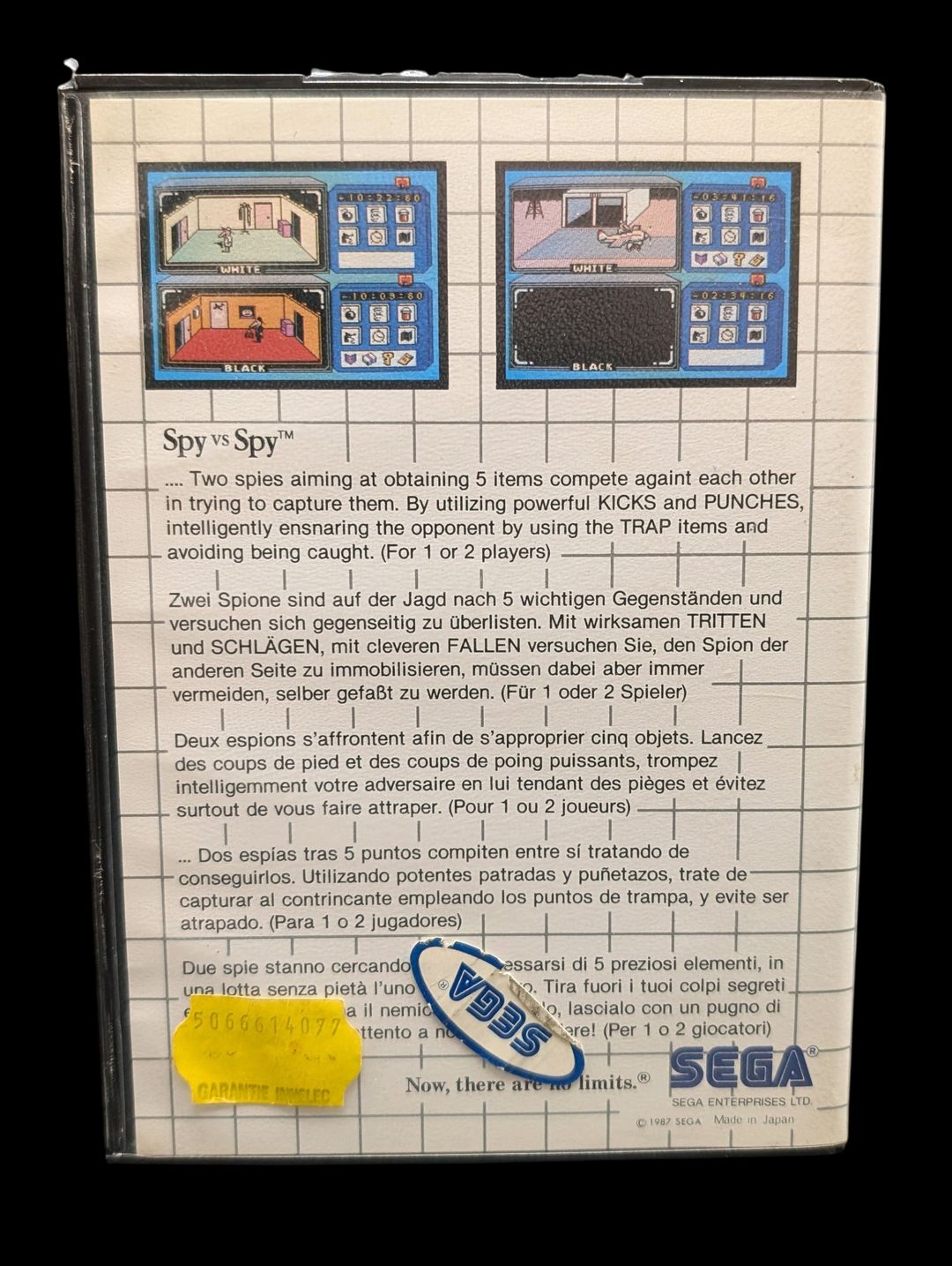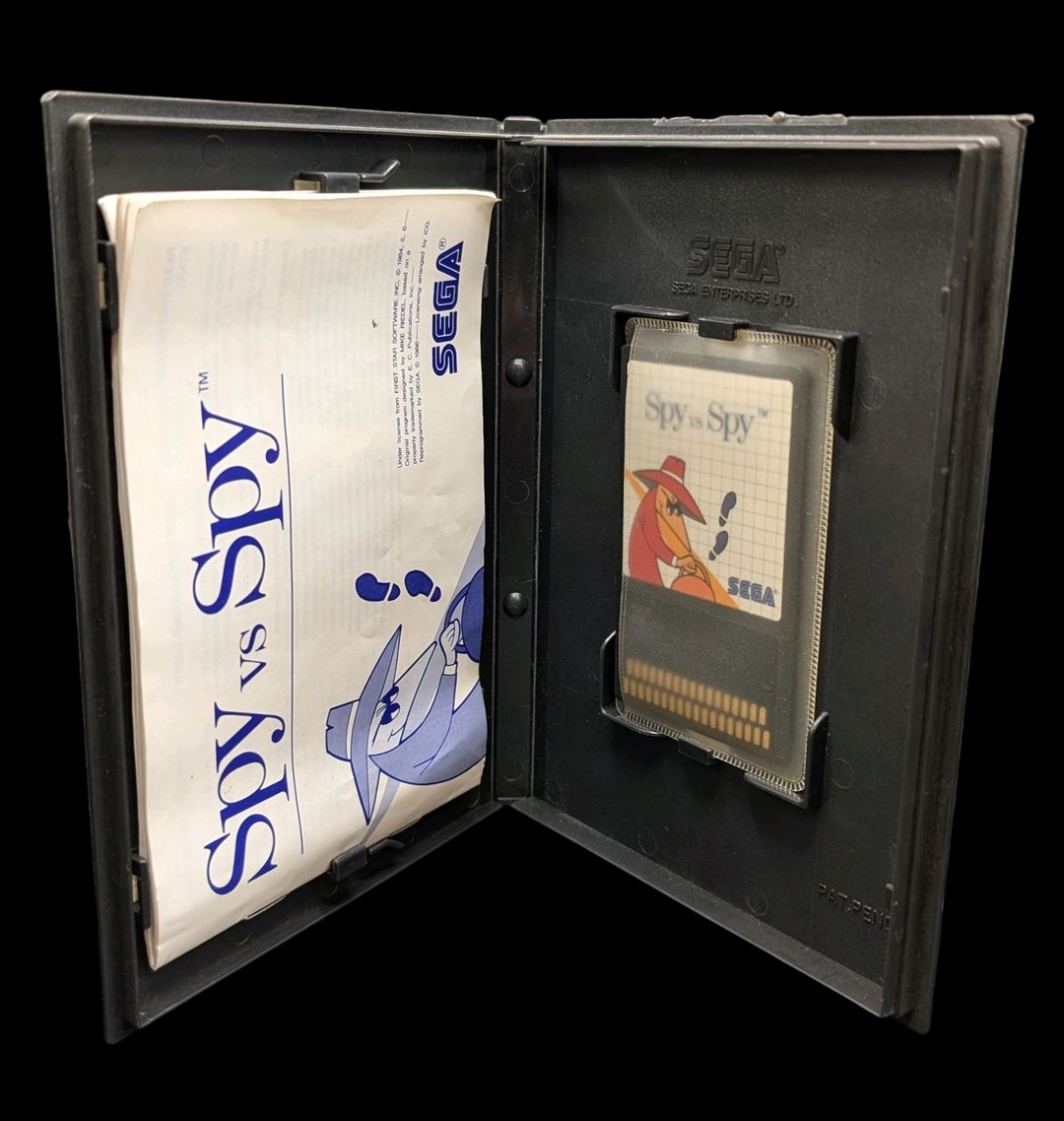 Sega – Master System – Jeu : Spy vs Spy. Avec boîte, cartouche, protection pour la cartouche, notice. Version du jeu PAL.