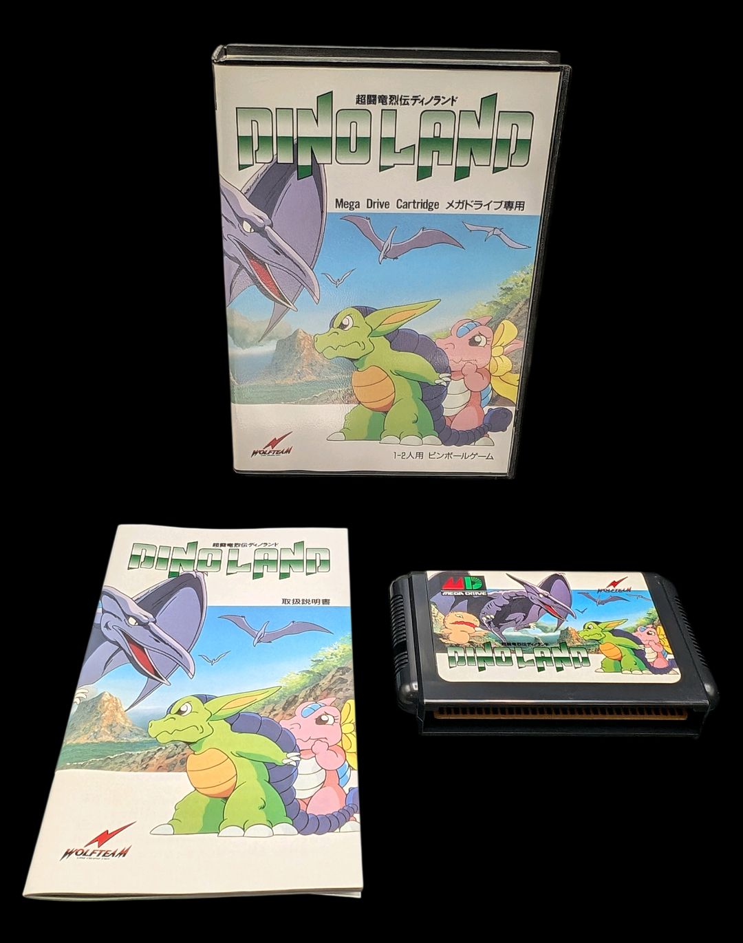 Sega – Mega Drive – Jeu Dinoland. Avec boîte, cartouche, notice. Version du jeu en japonais.