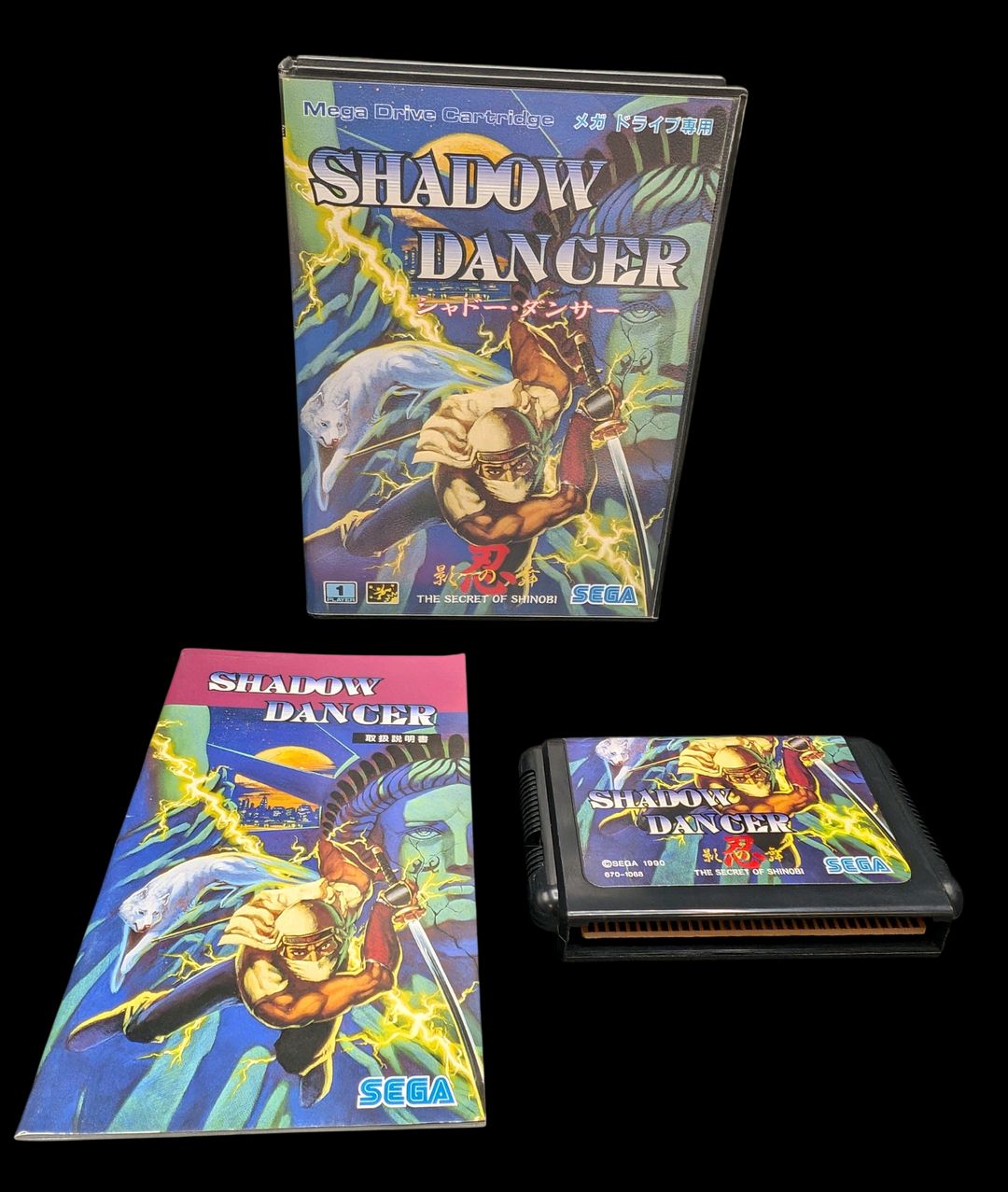 Sega – Mega Drive – Jeu Shadow Dancer. Avec boîte, cartouche, notice. Version du jeu en japonais.