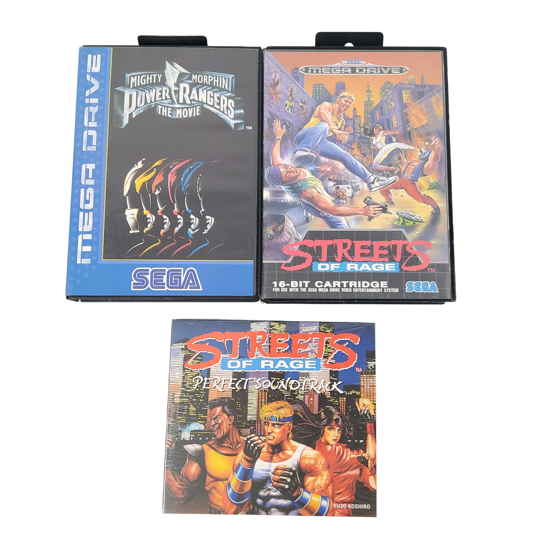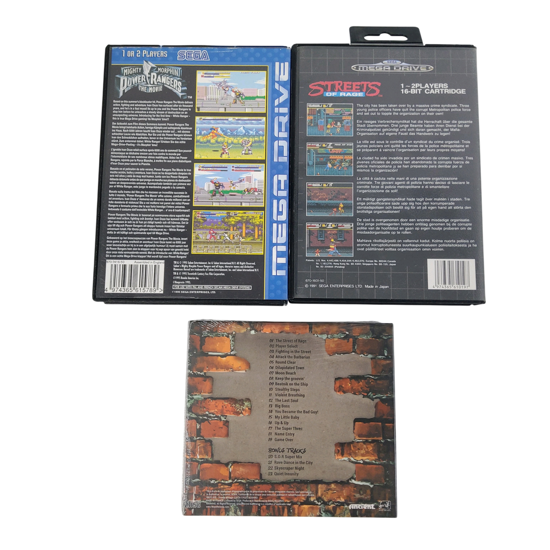Sega – Mega Drive – Lot de 2 jeux + 1 CD audio : POWER RANGERS THE MOVIE, STREET OF RAGE & CD STREET OF RAGE. Avec notices, boîtes. CD Neuf, sous blister.